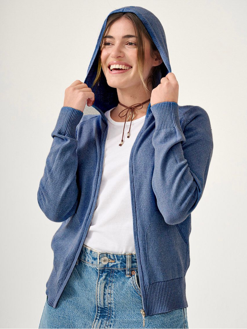 Campera con capucha y bolsillos. Bordado de libélula.
