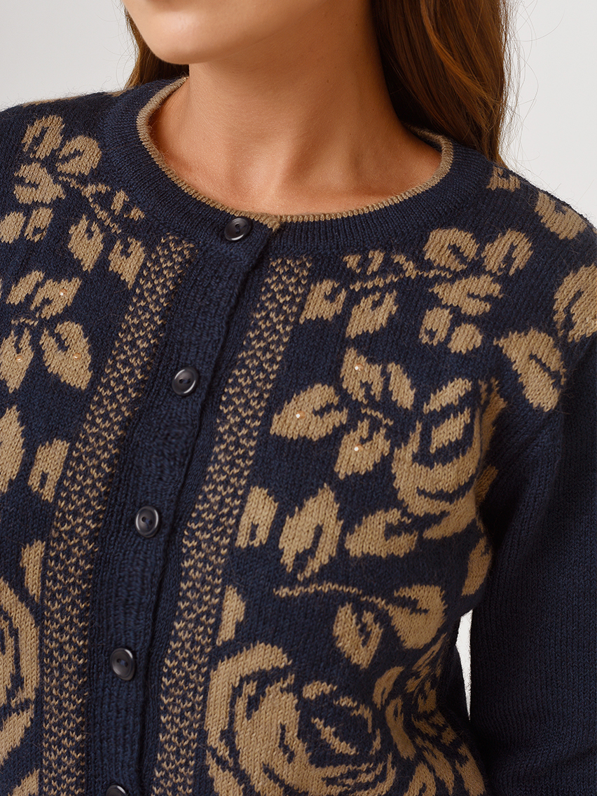 Cárdigan con jacquard de rosas y tachas en delantera.