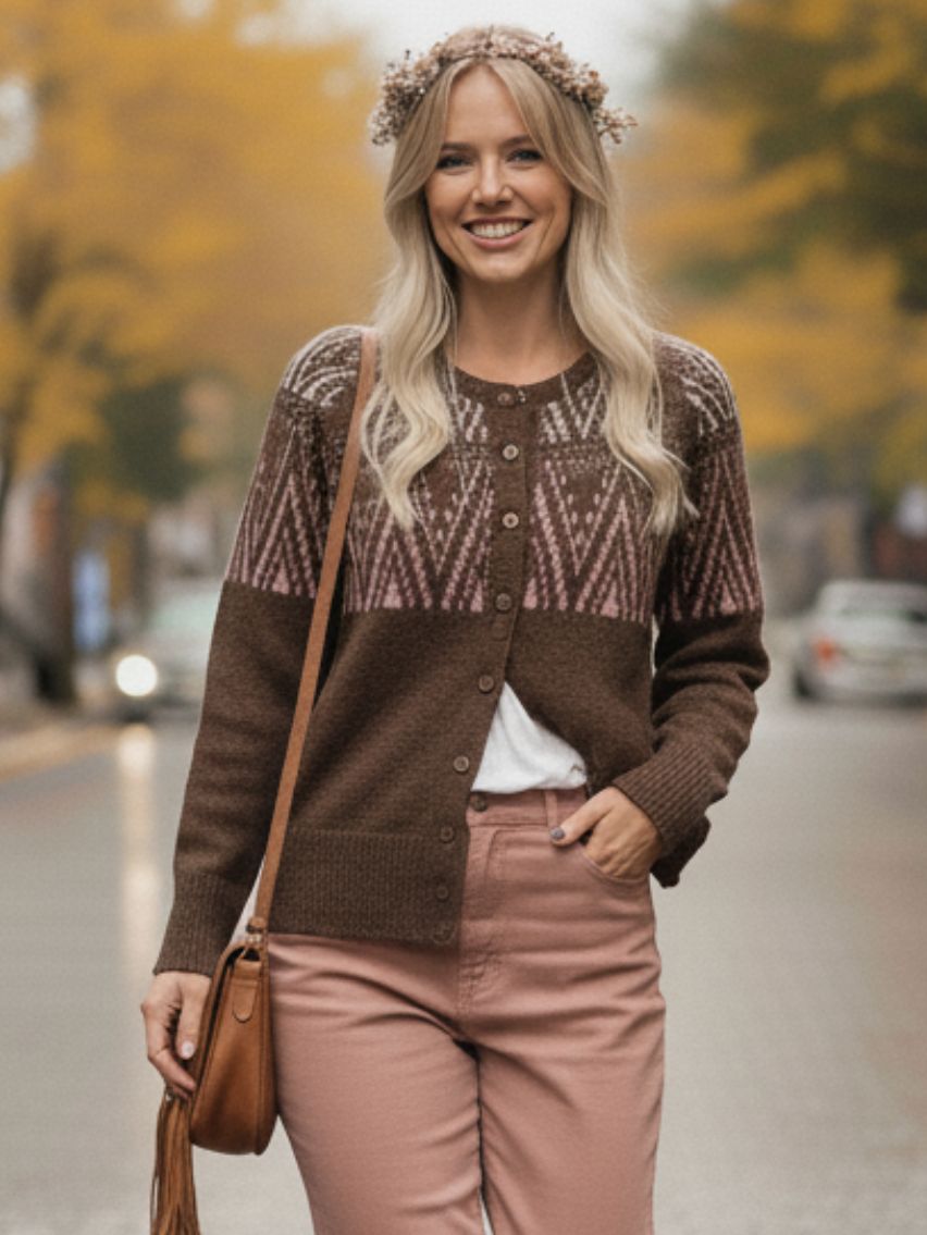 Cárdigan con jacquard en delantera y mangas