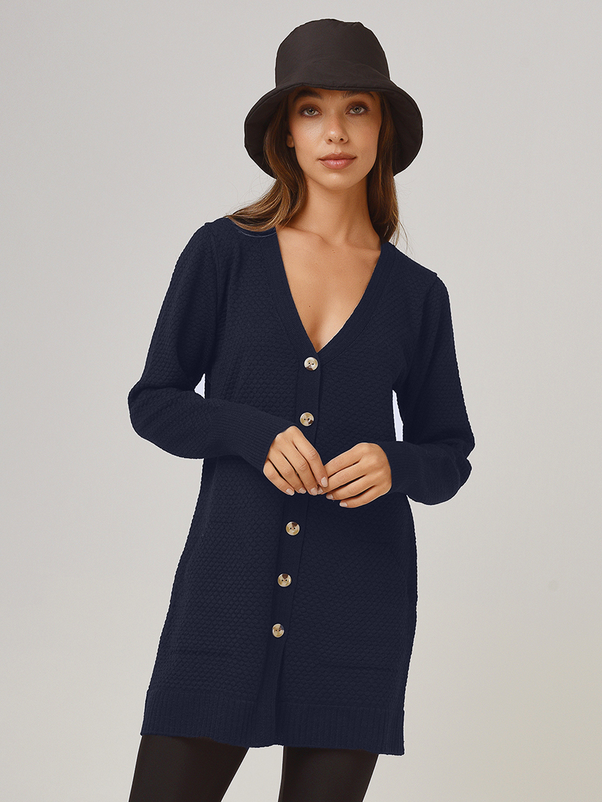 Cárdigan largo con punto fantasía y bolsillos en laterales
