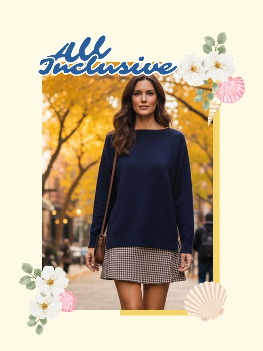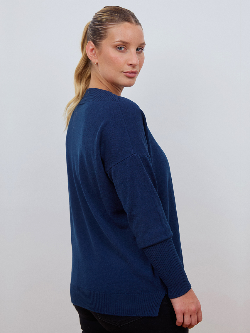 Sweater con puño alto, escote bote y tajo en los laterales.
