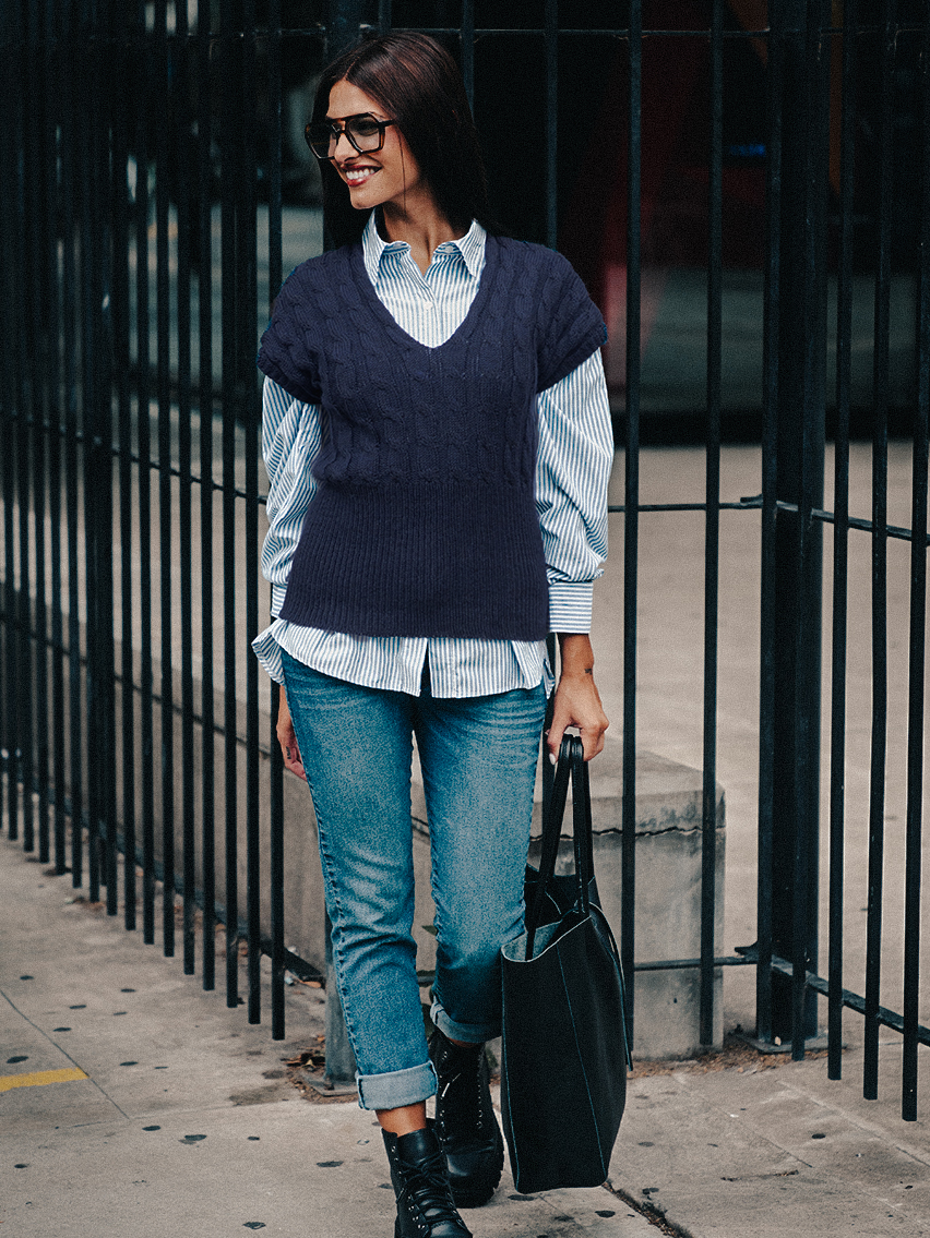 Chaleco escote en V con manga caída.