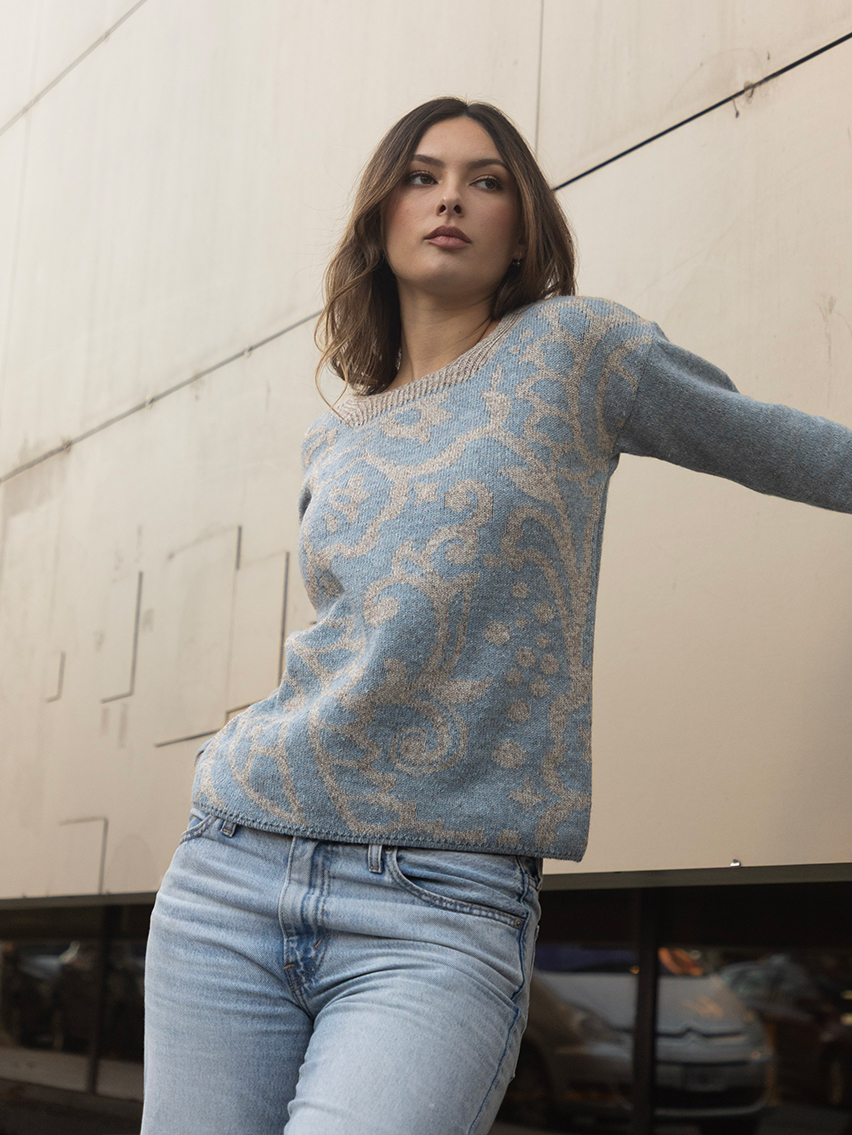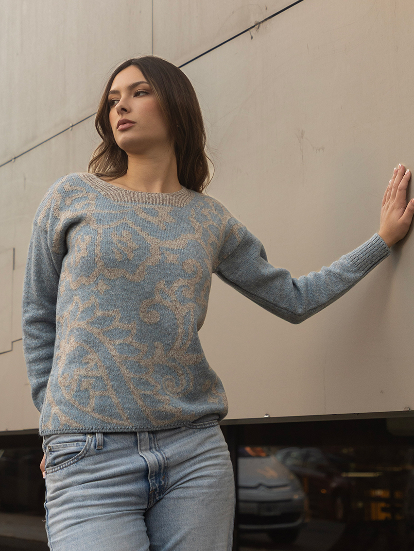 Sweater con escote cuadrado y jacquard en delantera.