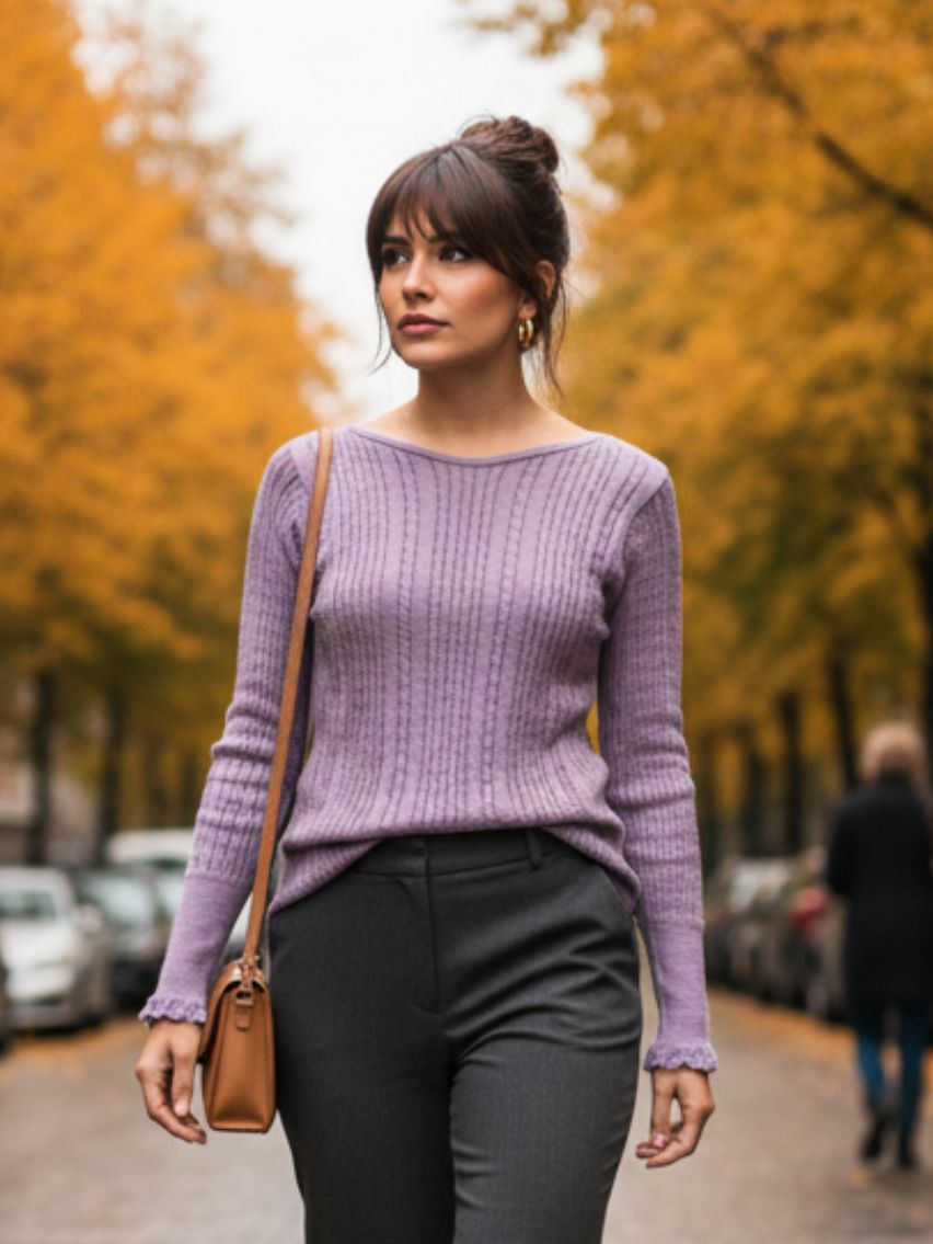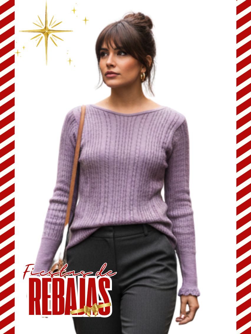 Sweater con trenzas en delantera y espalda. Puños festoneado con botones.