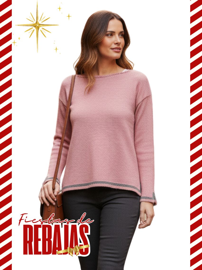 Sweater con tajos en lateral y en puño. Vivo combinado en elástico y puños