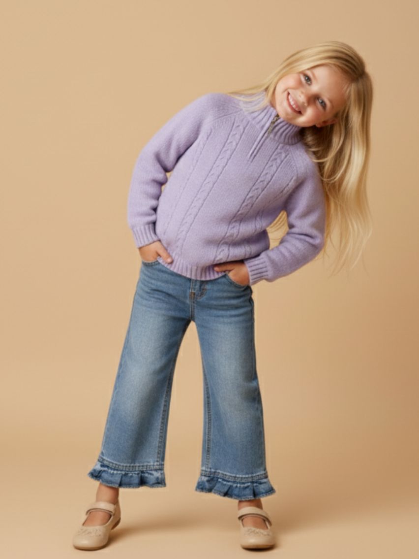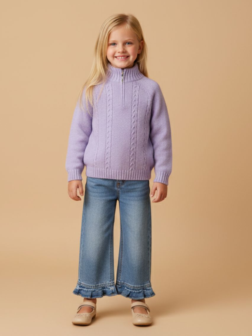 Sweater con cierre en cuello medio polo y ochos en delantera.