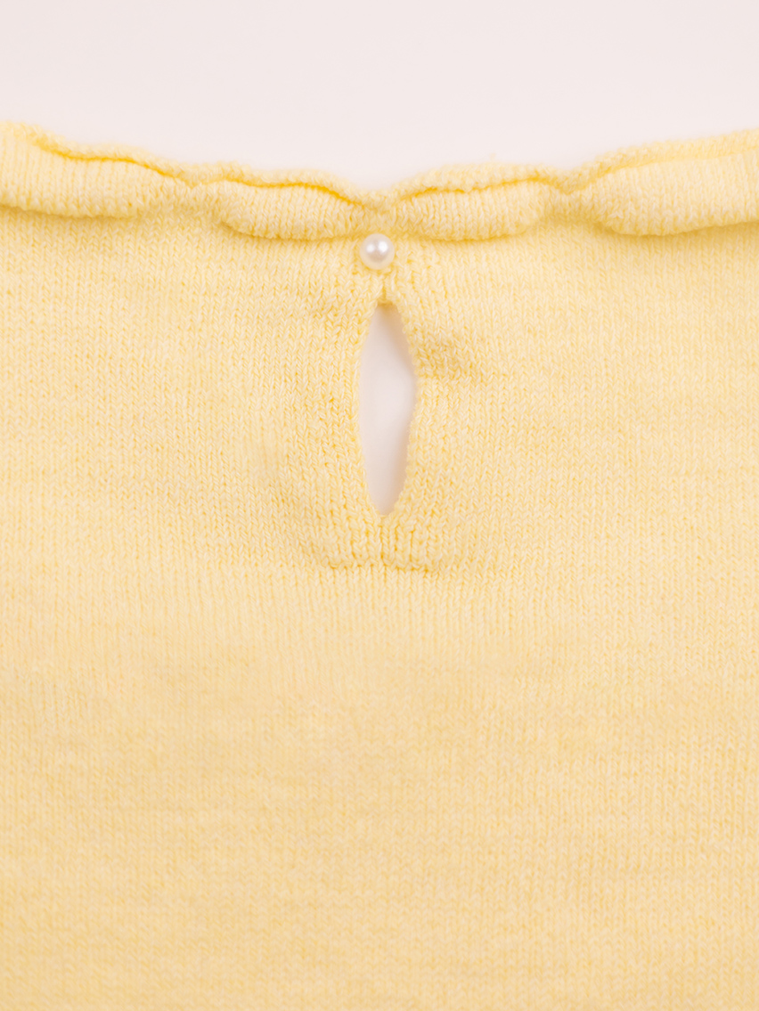 Sweater con escote cuadrado y puños festoneado. Detalle de perla en espalda.