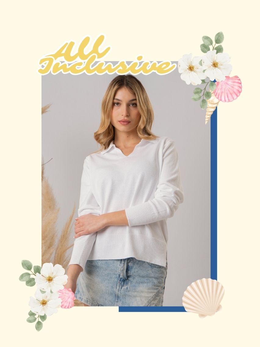 Sweater con escote chomba y tajo en lateral.
