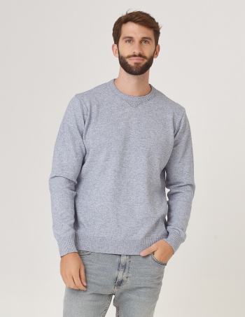 Sweater con cierre en cuello, rombo en delantera y canelones en espalda y mangas.